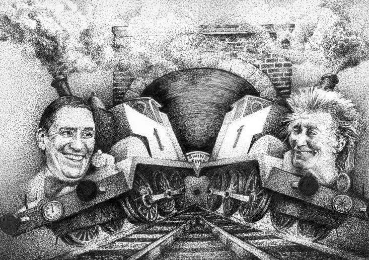 Sir Rod Stewart teamed up with Jools Holland to make the fabulous album "Swing Fever" which went straight to No. 1 in the music charts. I love this album and although I have produced their portraits before, their music and friendship inspired me. They have a wonderful relationship, not only with their love of music but also model railways.